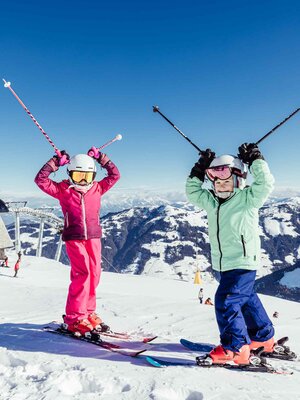 • Ein Mann und eine Frau auf der Piste beim Skifahren mit Panorama im Hintergrund. | © Ski Juwel Alpbachtal Wildschönau | Christoph Oberschneider Ein Mann und eine Frau auf der Piste beim Skifahren mit Panorama im Hintergrund. | © Ski Juwel Alpbachtal Wildschönau | Christoph Oberschneider