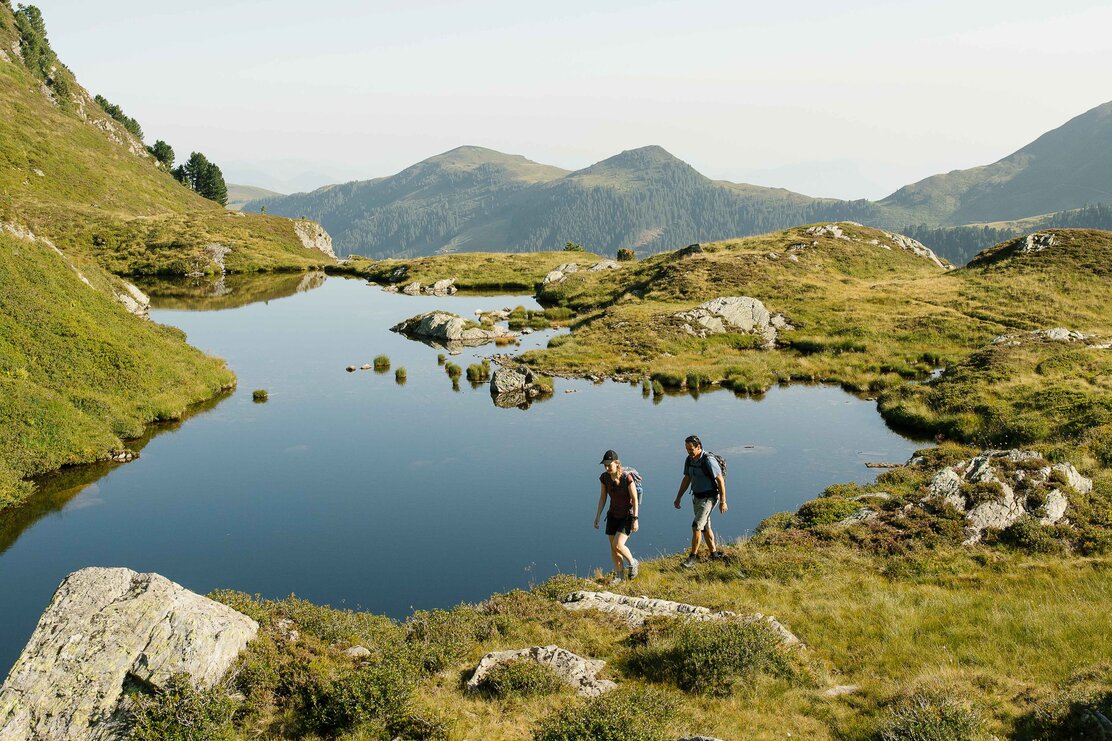 • Bergsee mit Almrosen und Blick auf den großen Galtenberg | © Alpbachtal Tourismus Bergsee mit Almrosen und Blick auf den großen Galtenberg | © Alpbachtal Tourismus