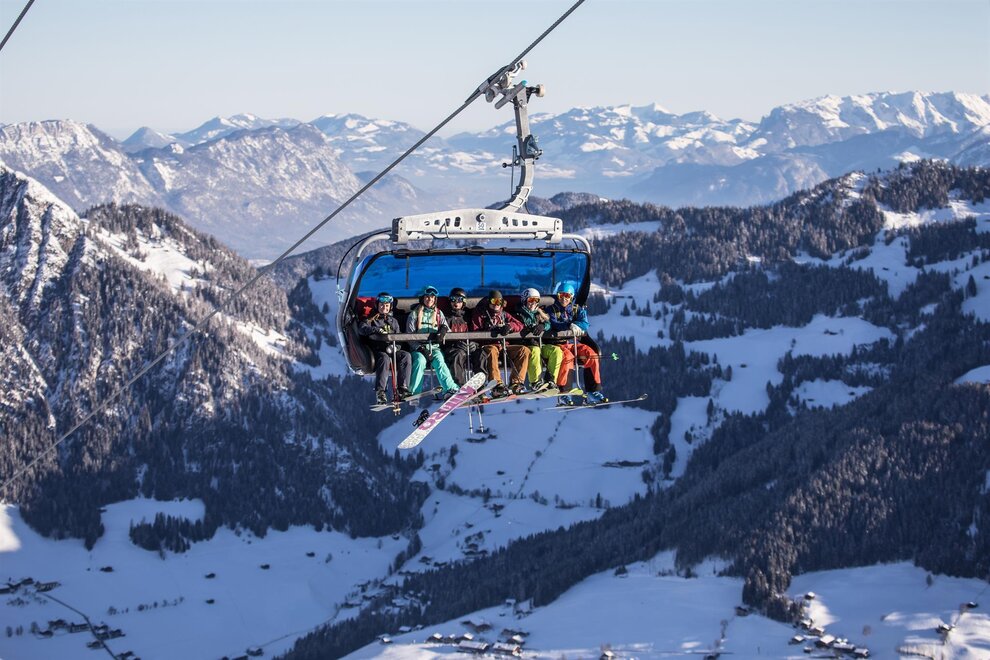 Auf die Berge fährt man direkt vor der Haustüre mit dem Familienjet (8er Gondelbahn).