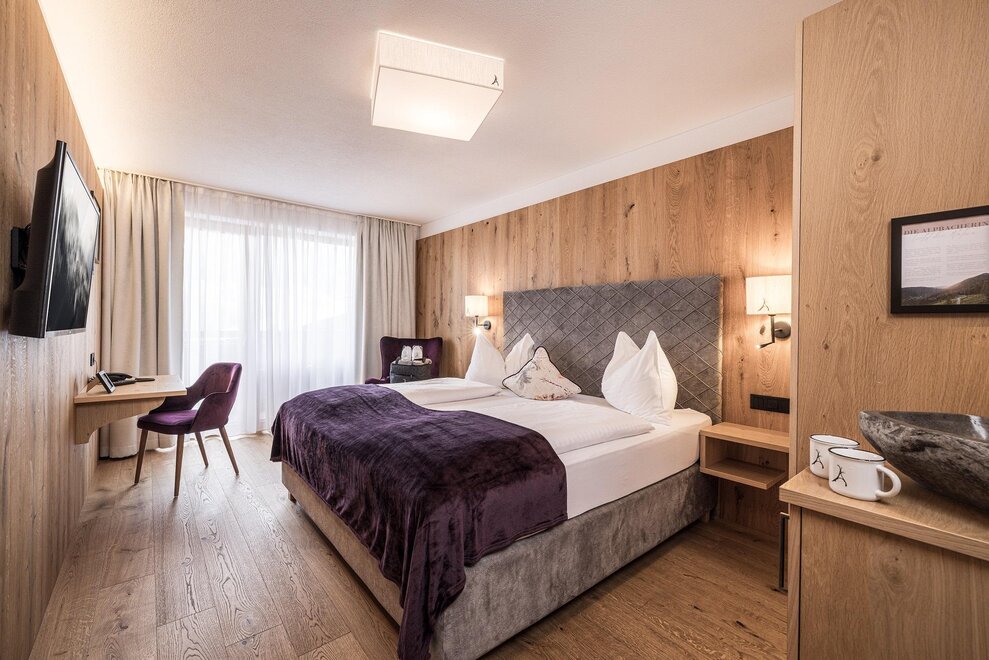 30-35m² Wohlfühlfläche ~ einige Zimmer mit Rundbett ~ Badezimmer mit Dusche ~ separates WC ~ Balkon oder Terrasse ~ Zimmerbrunnen mit Alpbacher Kristallwasser ~ Flachbild TV ~ Zimmersafe ~ Wasserkocher mit Kaffee & TeezubehörAusstattung Zimmer/Appartement