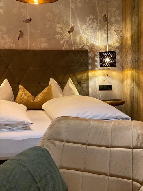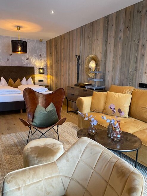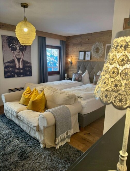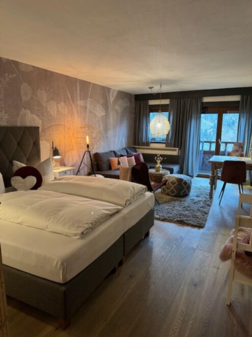 Charmantes Zimmer für 3 Personenmit geräumigen ca 45m2. Das Zimmer ist perfekt für einen gemütlichen Familien-Urlaub mit gut ausgestatteter Küche, Wohnzimmerbereich, Tisch & Sitzecke, Couch, Bad mit Dusche & WC, Balkon mit Aussicht auf die Bergwelt. Im Preis inbegriffen ist Frühstück. Von Sonntag bis Mittwoch servieren wir Ihnen ein köstliches Frühstück an den Tisch. Von Donnerstag bis Samstag zaubern wir Ihnen unseren Genuss-Frühstücks-Brunch mit vielen guten Köstlichkeiten.