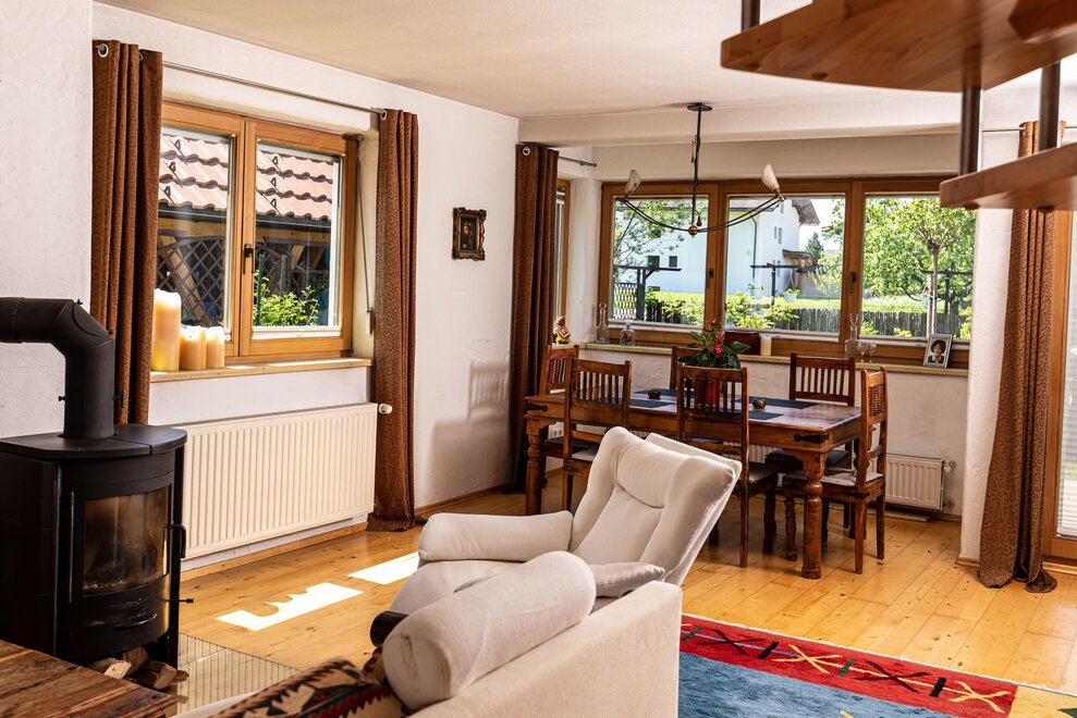 Küchengeräte, Bettwäsche vorhanden, Wohnzimmer, Terrasse (teilweise), Handtücher vorhanden, Balkon (teilweise), Geschirr vorhanden, Rauchmelder, Max. Haustiere: 3, Decken, Nichtraucher Zimmer/App./Whg., Holzofen, Privater Eingang, Haarföhn, Ohne Teppich, Garten, Shampoo, Zentralheizung, Sitzgruppe, Gefrierfach, Fußende der Betten offen, Gartengrill, Separate Schlafzimmer: 0, Toilettenwäsche, Geschirrspülmaschine, Esszimmer, Ruhiges Zimmer/Appartement, Küchenzeile, Dunstabzug, Geschirrspülbecken, Toilettenartikel, Kühlschrank, Wohn-/Schlafräume getrennt, Feuerlöscher, Liegestühle, Abstellraum, Elektroherd, Offener Kamin, Küche, Schrank, Kachelofen, Gefriermöglichkeit, Gartenmöbel, Satellitenfernsehen, Haustiere mit Rücksprache gestattet, Radio, Moderne Möblierung, Heizung, Wasserkocher, Kaffee-Maschine, Grundausstattung (Handtücher, Bettwäsche, Seife, Toilettenpapier), Steckdose in Bettnähe, Wiese, Terrasse, Kochmöglichkeiten, Holz- oder Parkettboden, Backofen, Balkon, Wohnküche