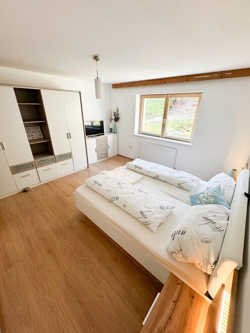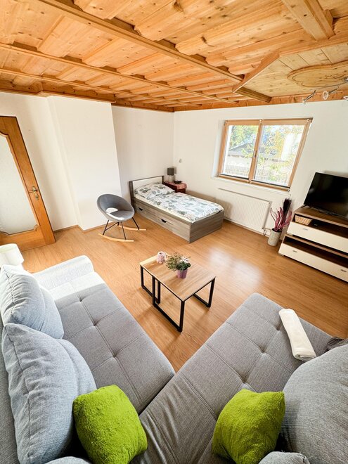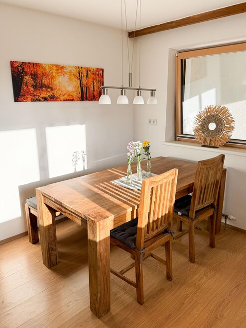 Unsere Ferienwohnung befindet sich im Erdgeschoss und bietet einen eigenen Eingang, der samt Ihrem Autoabstellplatz überdacht ist. Sie ist modern eingerichtet und bietet Platz für 5 Personen.