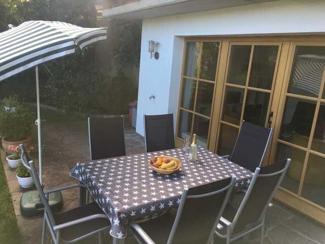 Ein eigener Garten mit großer Terrasse lädt zum Verweilen ein.Ausstattung Zimmer/Appartement