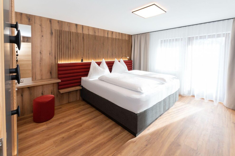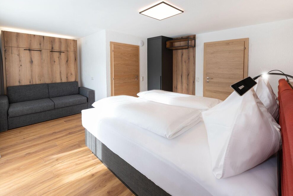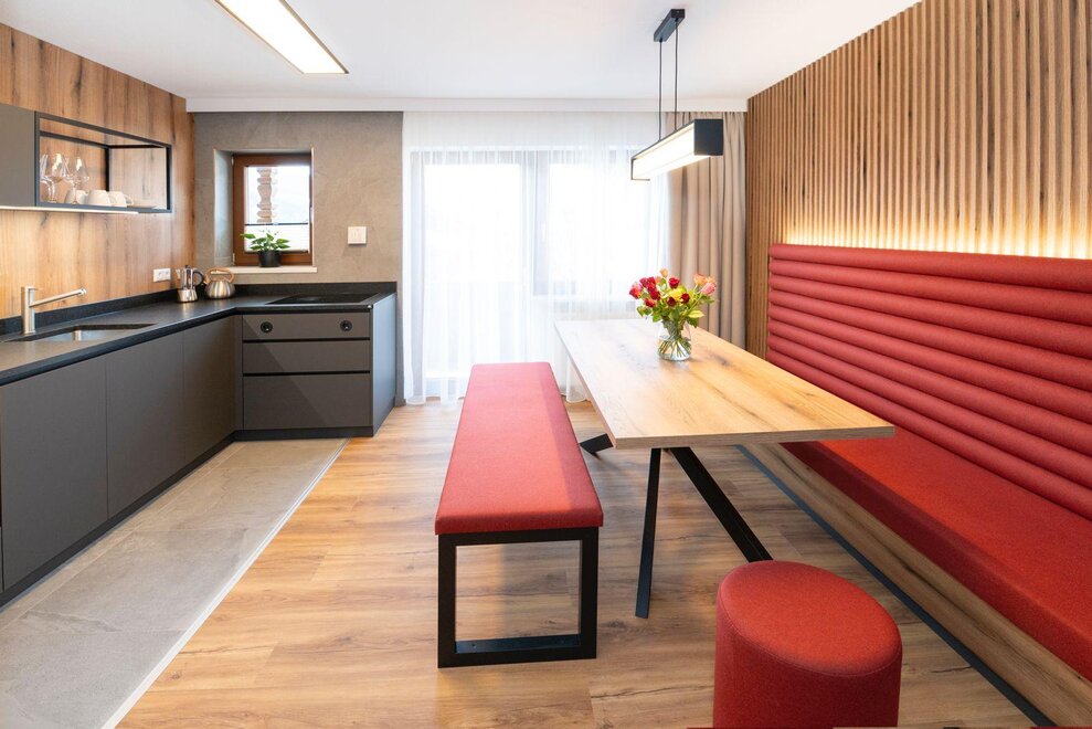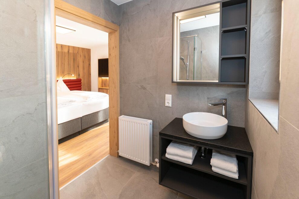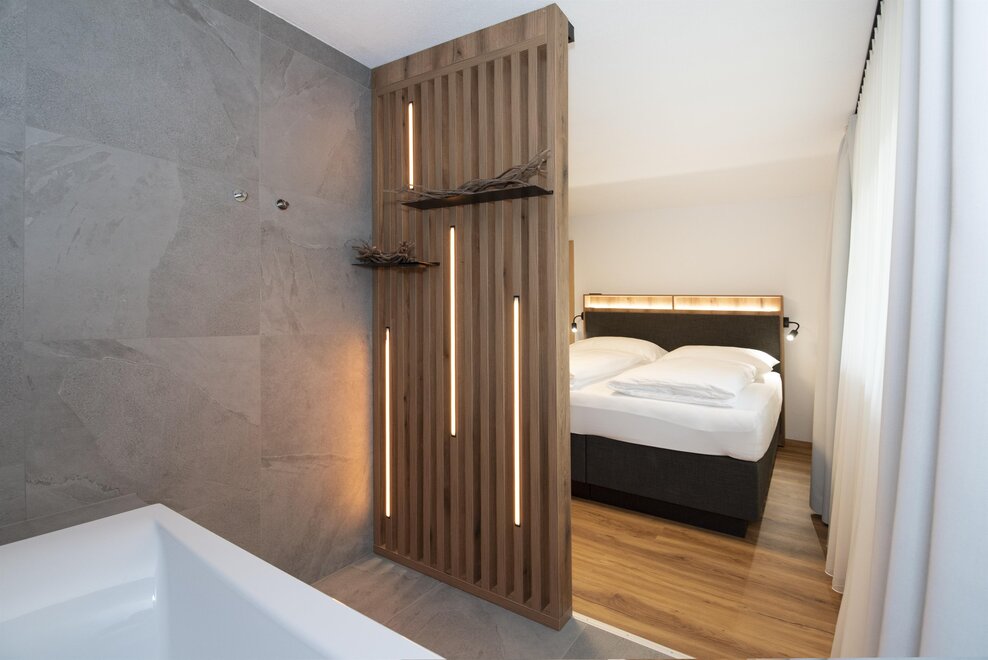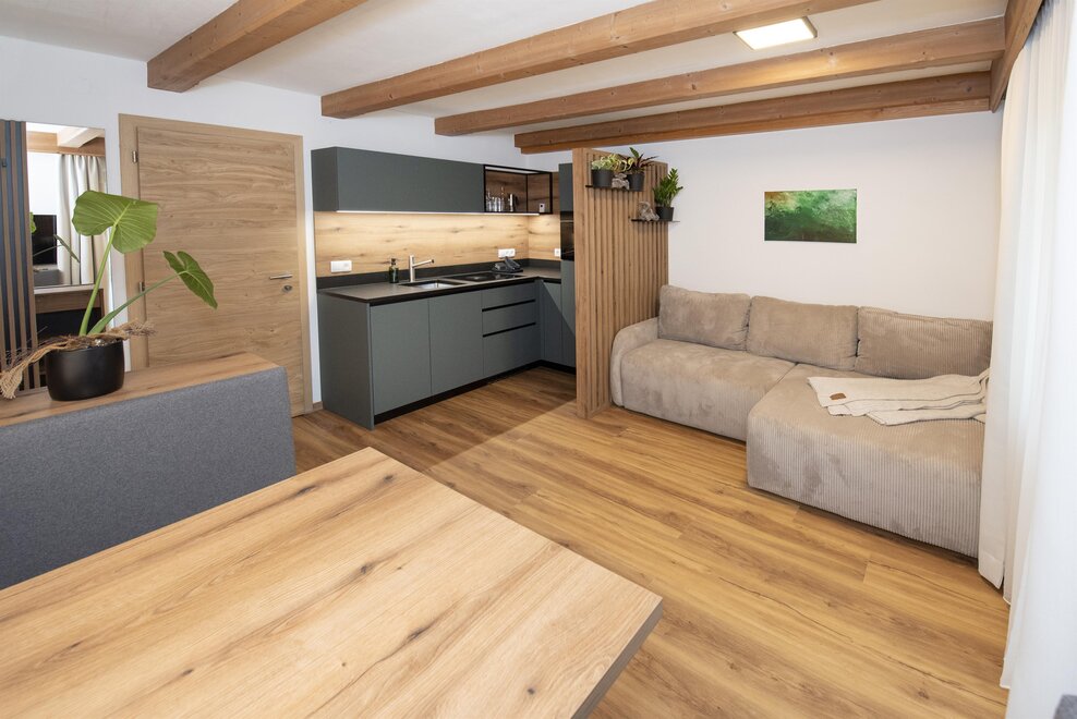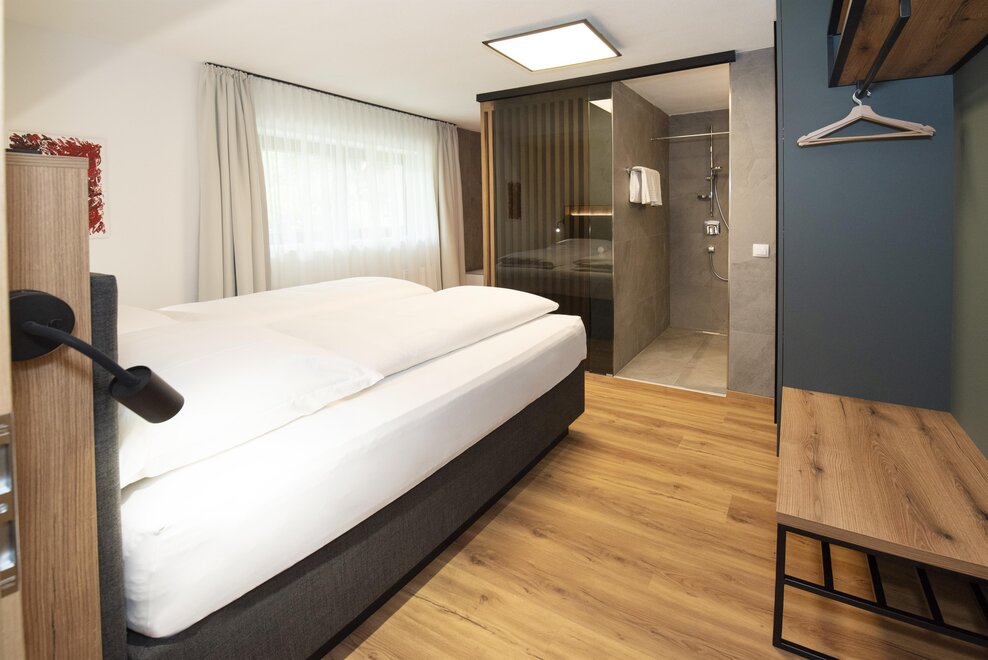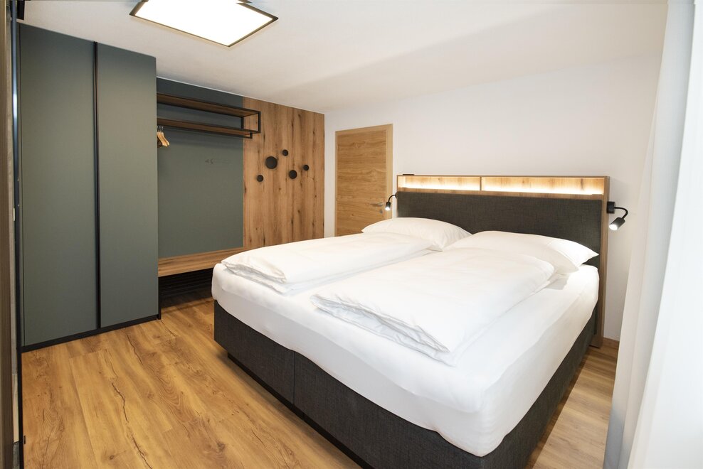Erleben Sie unser neues Double Deluxe Apartment, stilvoll eingerichtet und perfekt für einen erholsamen Aufenthalt in den Bergen. Das großzügige Apartment bietet zwei separate Schlafzimmer, zwei moderne Badezimmer sowie eine voll ausgestattete Wohnküche, die zum Verweilen einlädt.