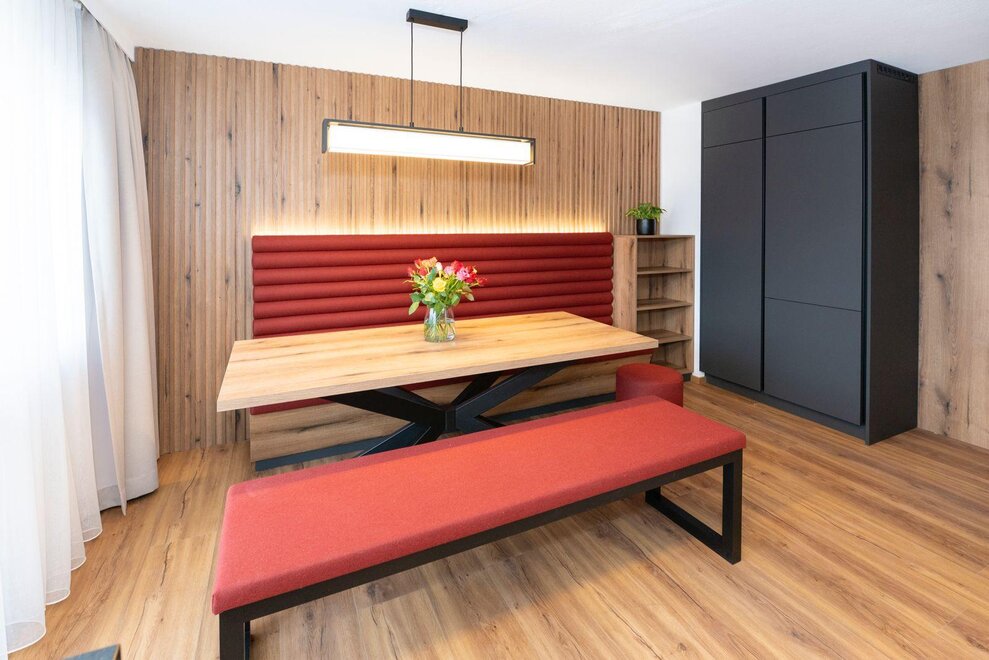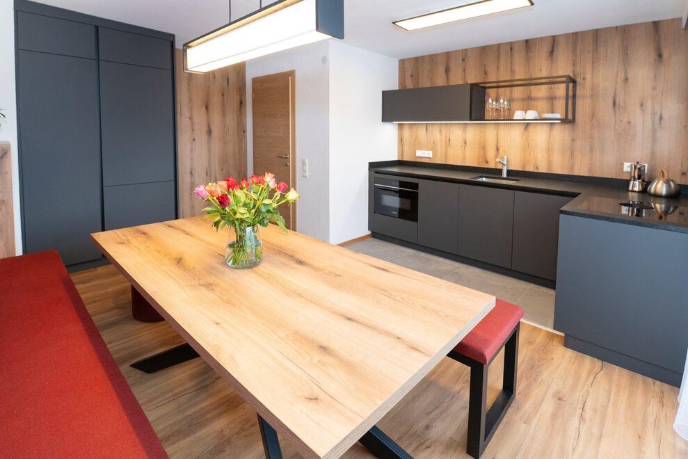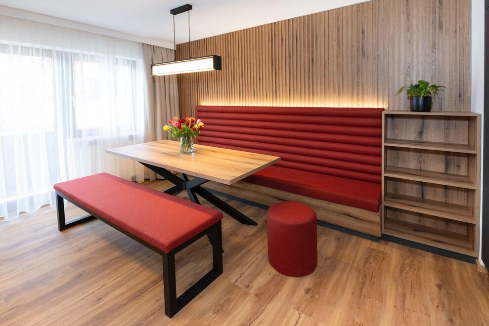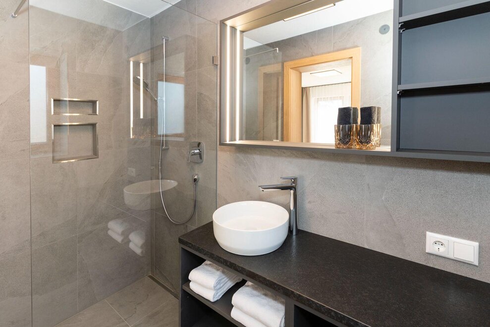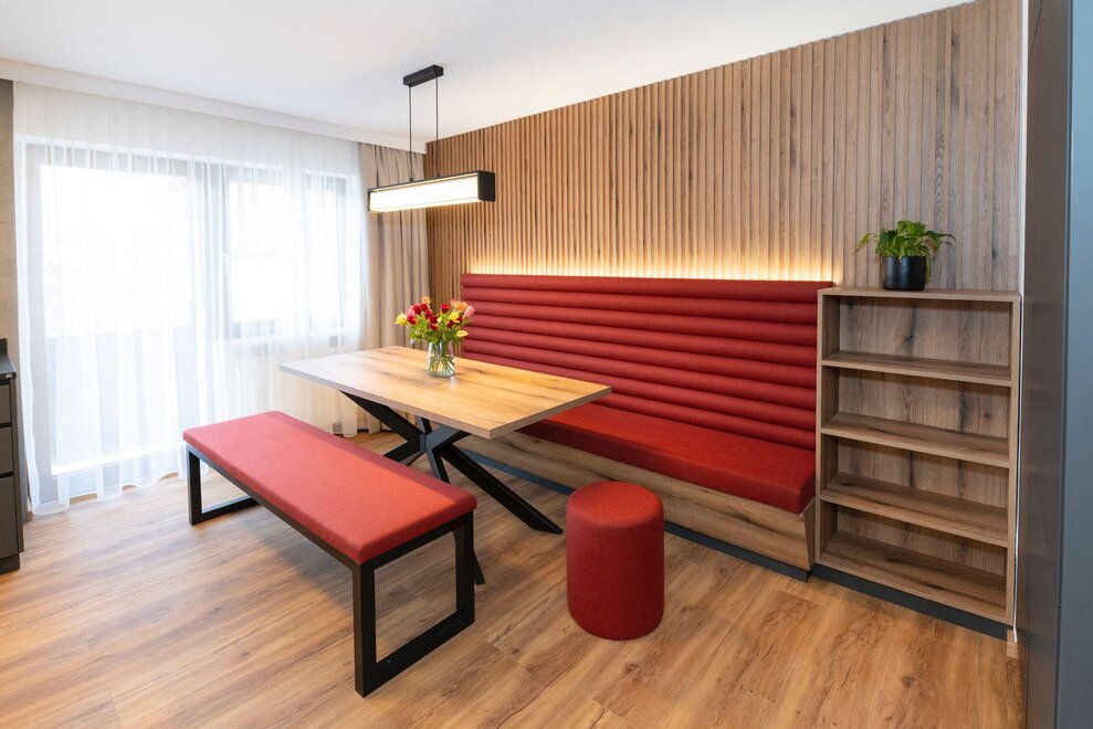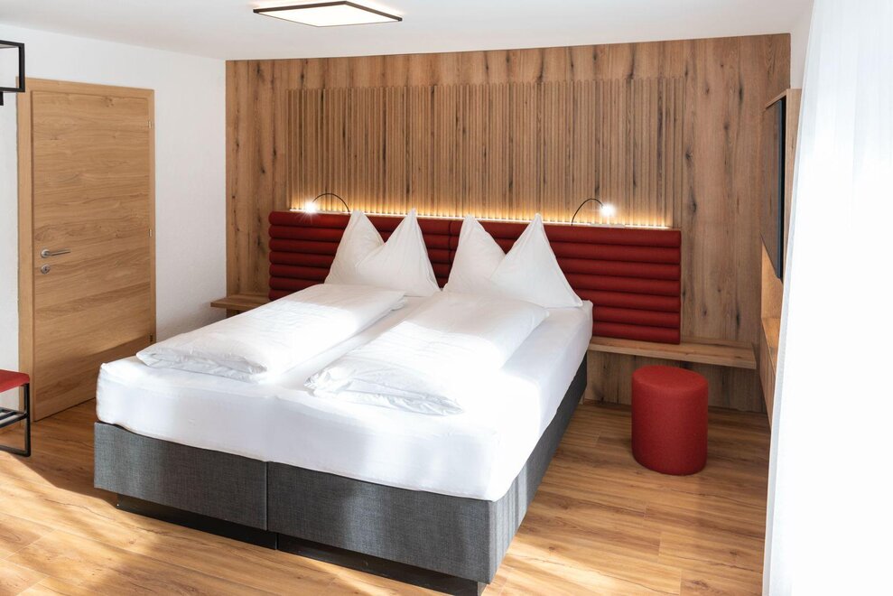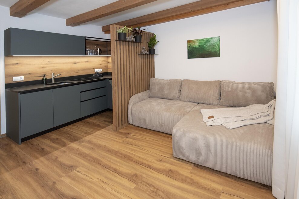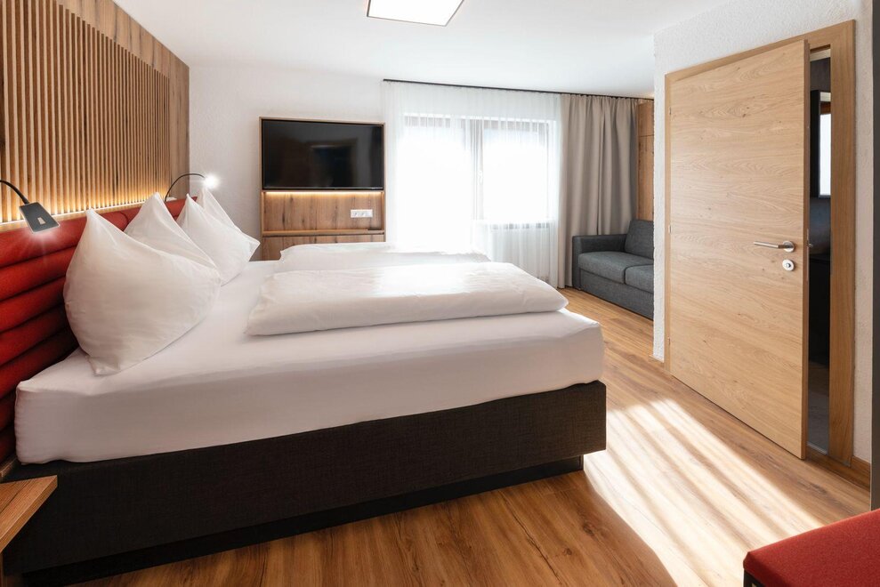 Erleben Sie unser neues Double Deluxe Apartment, stilvoll eingerichtet und perfekt für einen erholsamen Aufenthalt in den Bergen. Das großzügige Apartment bietet zwei separate Schlafzimmer, zwei moderne Badezimmer sowie eine voll ausgestattete Wohnküche, die zum Verweilen einlädt.