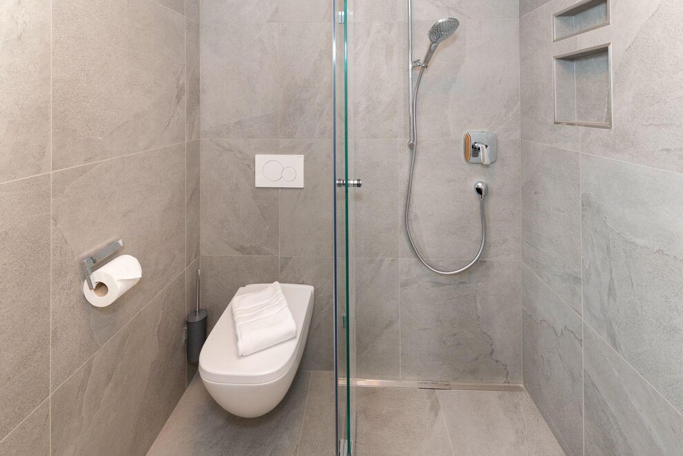 - Ausschließliche Verwendung von wassersparenden Armaturen (z.B. intelligente Duschen, Duschköpfe mit geringem Durchfluss)