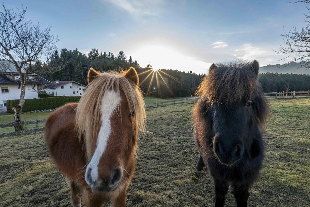 Auf unserem Hof leben saisonsbedingt Kaninchen, Enten, Schweine, Schafe, Ziegen, Hühner, Kälber, Katzen und Hündin Ina. Ganz neu bei uns sind die beiden amerikanischen Miniaturpferde Fini & Ilsa, die mit ihrem sanften Wesen und ihrem charmanten Charakter die Herzen unserer Gäste im Sturm erobern. Genießen Sie Natur, Entspannung und tierische Begleiter!