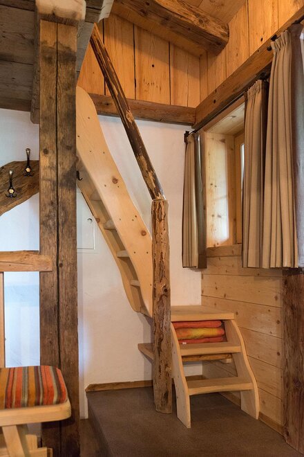 Das Holz von einer ca. 300 Jahr alten Hütte wurde zu einer gemütlichen Almwohnung umgewandelt.