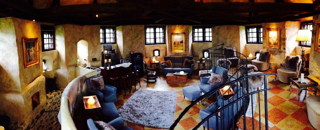 In der Turmspitze ist eine Relax-Lounge eingerichtet - mit herrlichem Blick auf das Inntal.
