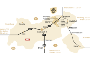 Your adventure into the beautiful Alps begins in the Austrian province of Tyrol, in the Alpbachtal. Whether you're travelling by car, train or plane, it's easy to get to us in the Alpbachtal. Centrally located in Tyrol, between Innsbruck and Kufstein, you are always just a stone's throw away from the nearest railway station.