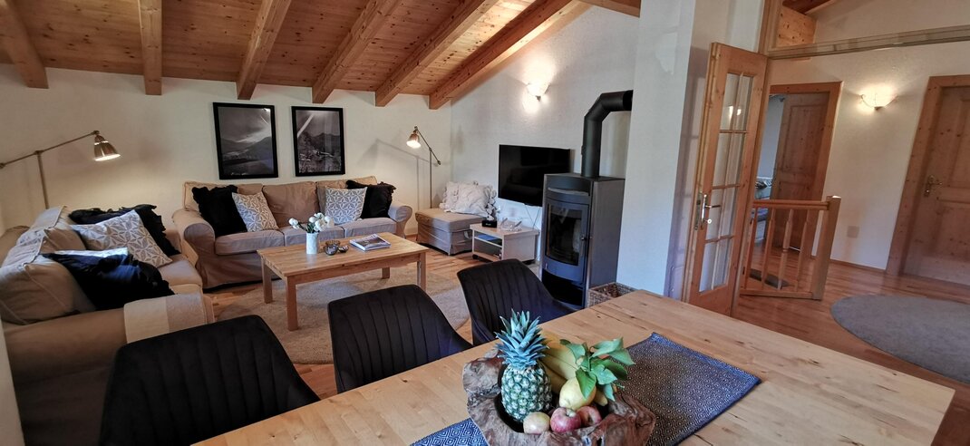 is situated in Inneralpbach, about 4 km from the centre of Alpbach, surrounded by nature. In winter you reach the lifts and pistes within a short walk. The crosscountry slopes and winter hikes start directly at the house. In summer the Alpbach Loft is the perfect base for hiking, biking or just enjoying the wonderful mountain views from one of the two balconys. In Innteralpbach there are a couple recommendes restaurants in walking distance. Shops you find in the centre of Alpbach but you can order fresh brad with delivery service every day and even food is delivered if you buy online. The Alpbach river passes by the house which offers a fresh feeling in hot summers and a romantic scenery in winter.