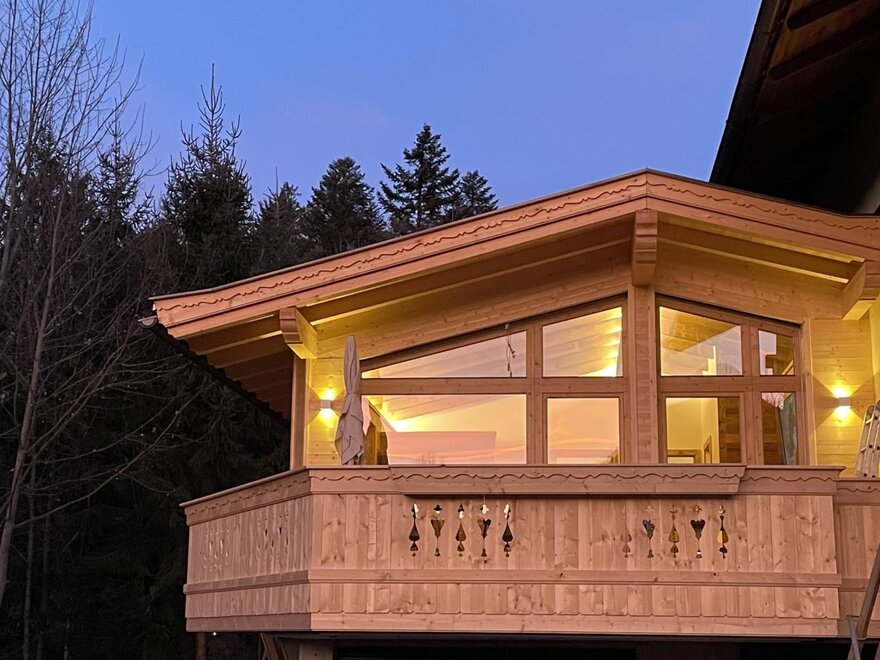 In Reith im Alpbachtal,is our new and top-equipped alpine chalet. The 70m² chalet consists of 3 rooms, the kitchen with modern kitchen appliances, and a high-quality bathroom with toilet. On the spacious terrace you can comfortably enjoy the Tyrolean mountain air, while you can be enchanted by the charm of the Tyrolean mountains.