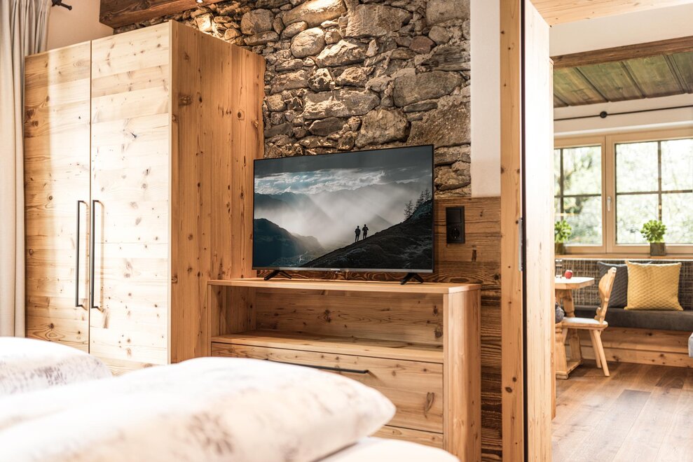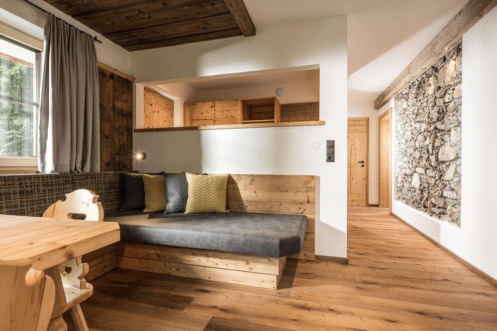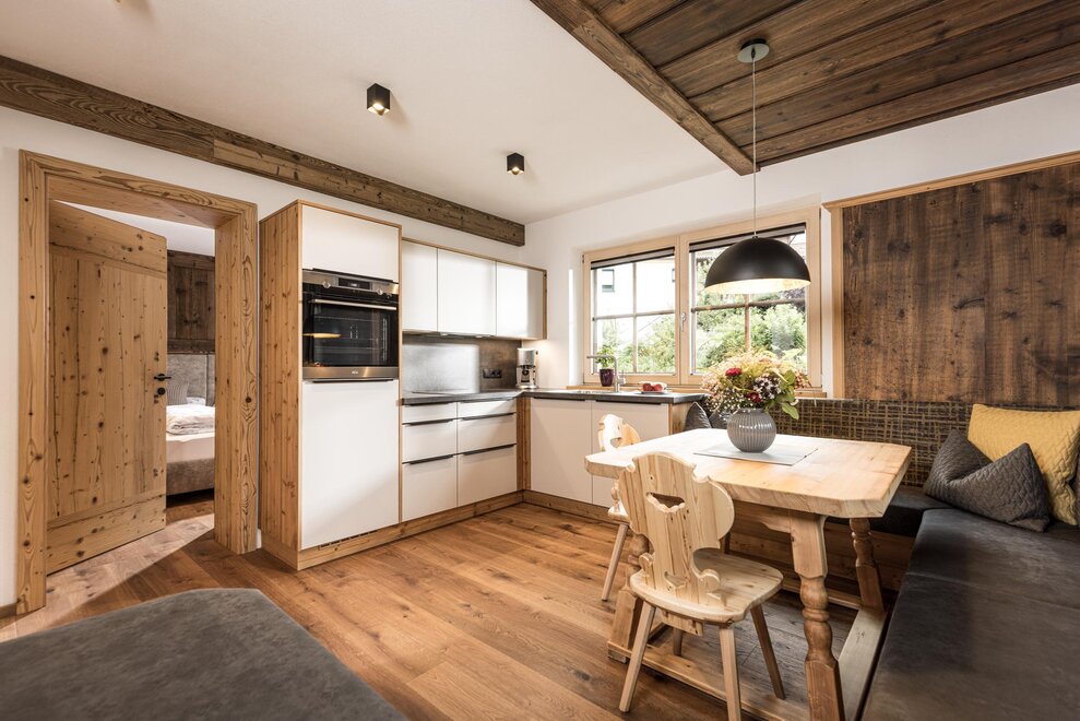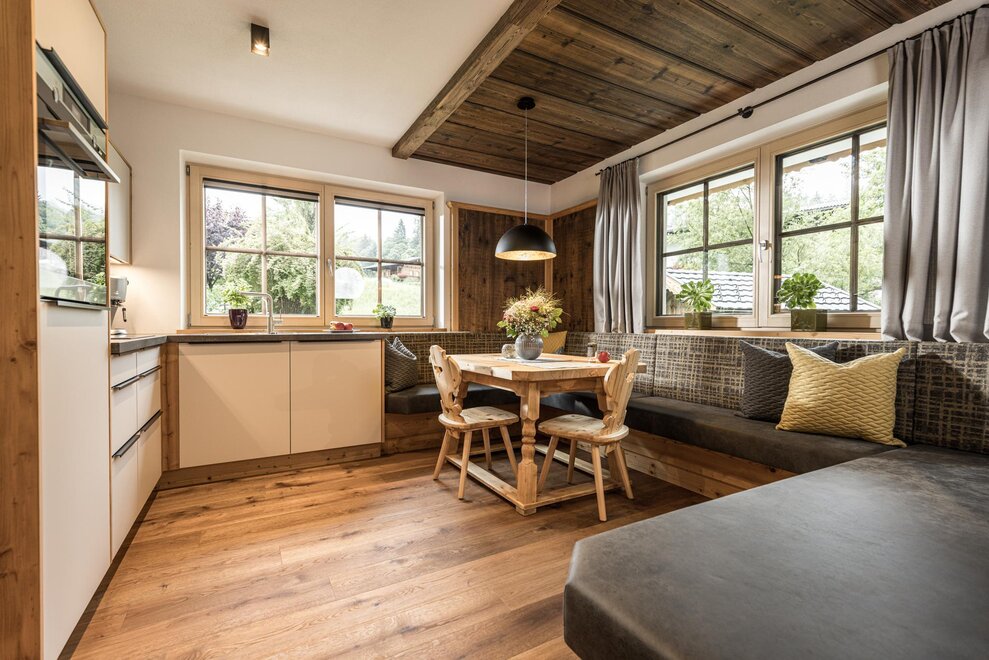 Our chalet "Alte Schmiede" was built over 300 years ago and completely renovated in 2018. The living space of 180m² extends over two floors. On the upper floor there are 4 bedrooms and a dressing room. The old wooden walls create a cosy atmosphere and cosiness. On the ground floor there are two bathrooms with shower and toilet. In the rustic farmhouse parlour with the large dining table you can spend some comfortable hours. The fully equipped kitchen leaves nothing to be desired. After eventful days you can relax in the Swiss stone pine sauna with rest area. The veranda facing south invites you to linger. There is also a storage room for skis and snowboards with ski boot heating. W-Lan will be available from spring 2019.