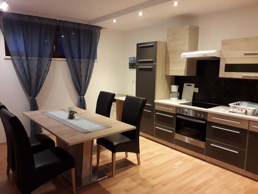 Apart Zireiner SeeThe apartment is located in the lower ground floor of our newly built house. It has one Living room ventilation that offers you a healthy indoor climate throughout the year! Roman blinds with remote control and underfloor heating provide pleasant comfort. The newly furnished bathroom has a shower / WC. The large flat screen TV invites you to a cozy TV evening. For bookworms books and magazines are available. For children we have various games for indoors. The large dining area allows for cozy get-togethers. The kitchen is fully equipped.