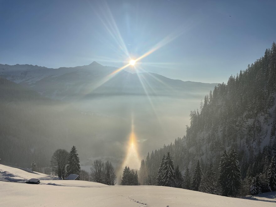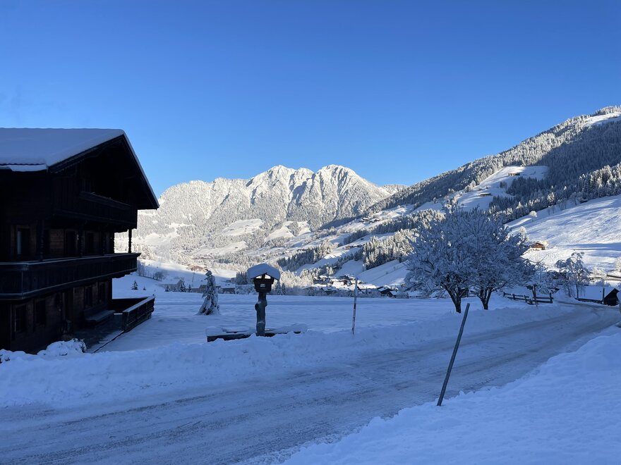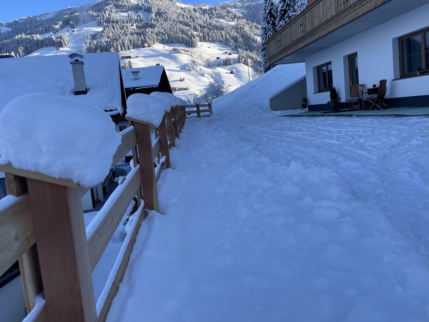 Our house is situated in a quiet, idyllic location on a plateau in Alpbach. Here, you can enjoy the tranquility of nature while still being just a short walk away from the ski lift. Right outside your doorstep, you'll find access to cross-country ski trails, hiking paths, and ski touring routes.