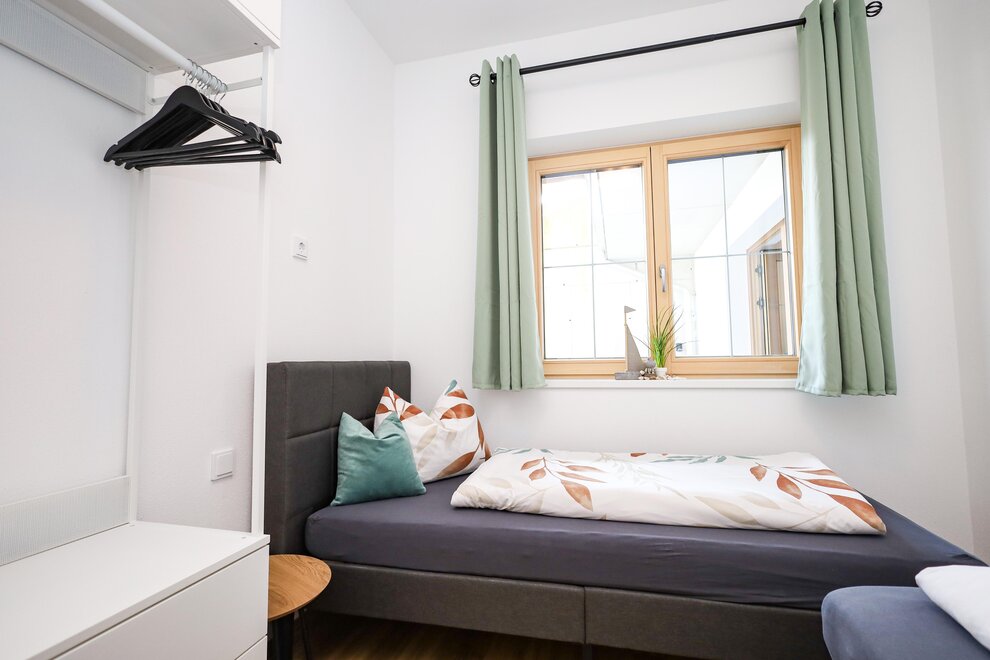 In the living kitchen, you can prepare shared meals and unwind at the end of the day. The kitchen is equipped with everything you need to prepare delicious meals (including a dishwasher). The seating area in the living kitchen provides ample space for shared meals or game nights.
