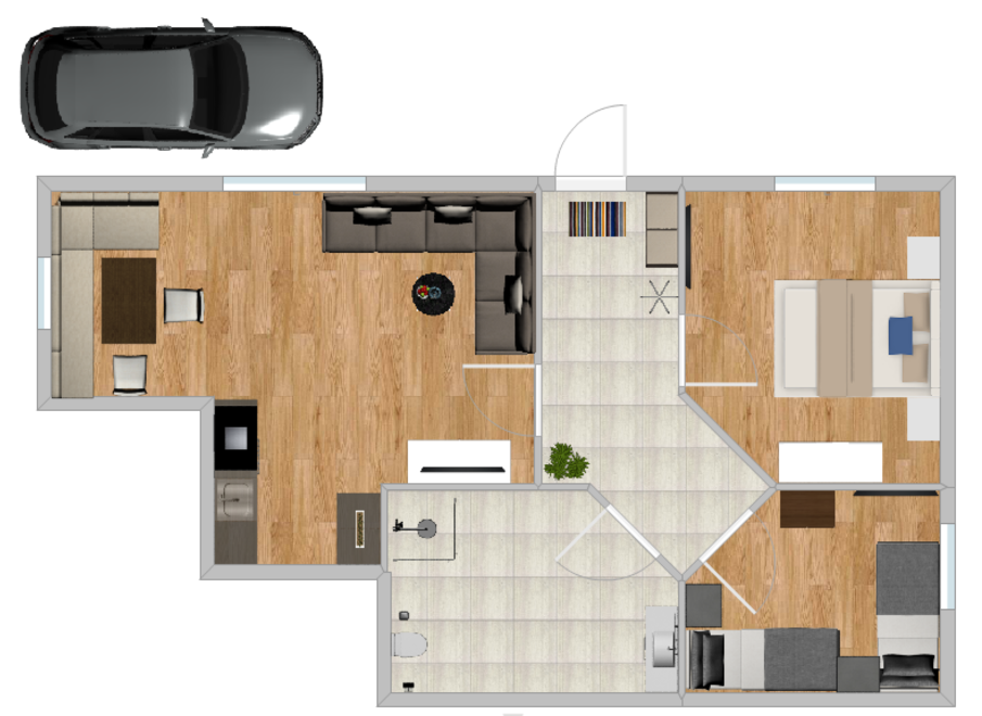 Size 60 m² Occupancy 1 - 5 adults , 0 - 4 children Rooms 3 Bedrooms 2 Room details
