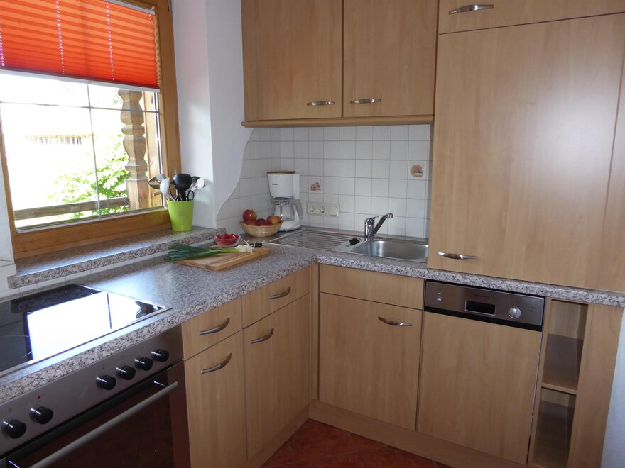 The kitchen-living room is bright with a large dining table, large seating area with TV with access to a large balcony with a beautiful view of the "Wiedersbergerhorn"- our Alpbachtal-Wildschönau ski area.