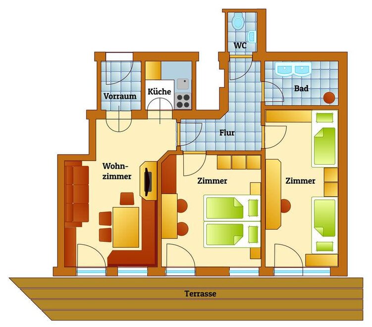 • The room category apartment with 1 bedroom and apartment with 2 bedrooms you can book on request as well with a dog (€ 15,00 per day/no food)