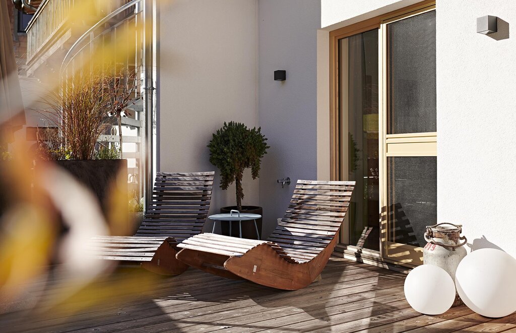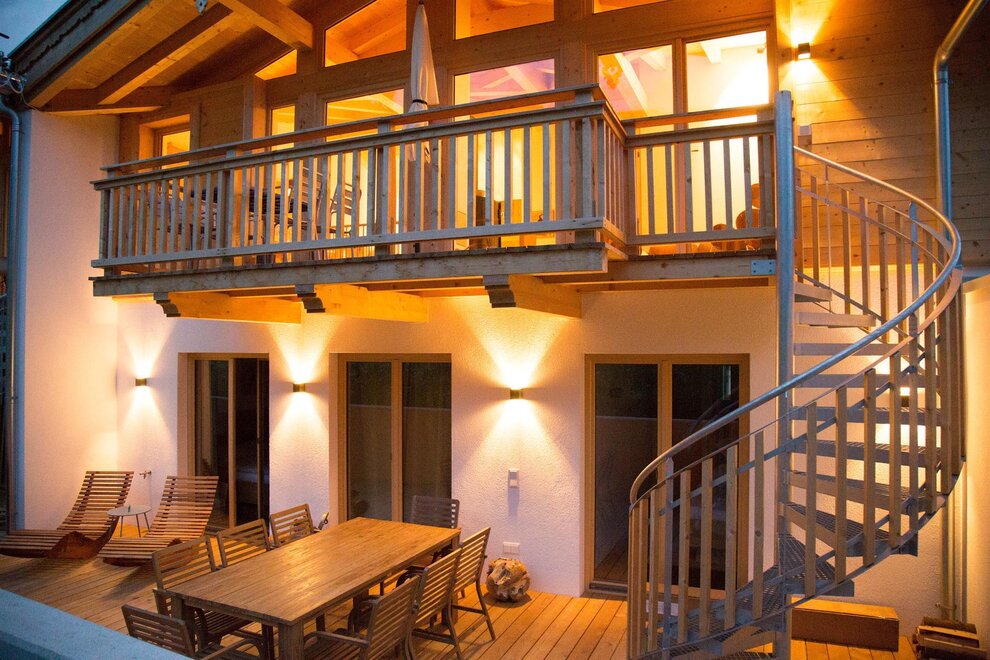 The traditional chalet is decorated in a modern alpine design. All rooms are natural rooms with lots of wood to feel good. With 130 square meters, the Chalet Matty has four bedrooms, which comfortably sleep eight people, two bathrooms with shower and / or bath, a living area with open kitchen, cozy lounge area, 180 degree swivel fireplace and rustic sitting area with large dining table and plenty of space for unforgettable hours with friends or family. Balcony and terrace with outdoor furniture, loungers and sunshades to relax and look into the distance.