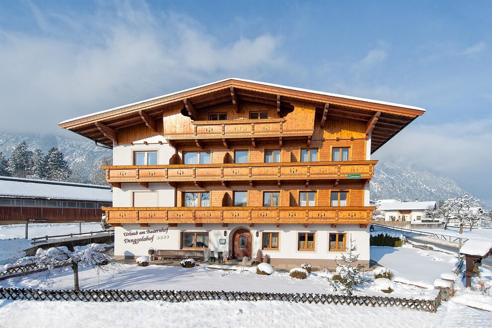 Comfort and renowned Tyrolean hospitality at 540 m above sea level. Surrounded by magnificent Tyrolean mountain scenery at the foot of the Sonnwendjoch mountain, we look forward to welcoming you with our varied range of holiday offers including sport and leisure activities. Our farm is furnished in an original Tyrolean style. A very special way of living. We have been categorised by the state of Tyrol and been awarded 4 flowers, which is the highest possible category. Location: Our farm lies on the southern slopes in the middle of the holiday region of the Alpbachtal valley & Tiroler Seenland (Tyrolean lake region), in a quiet but central location. offerings: Free horse riding, heated outdoor swimming pool in the sports centre (5-minute walk), bathing lakes in the neighbourhood.