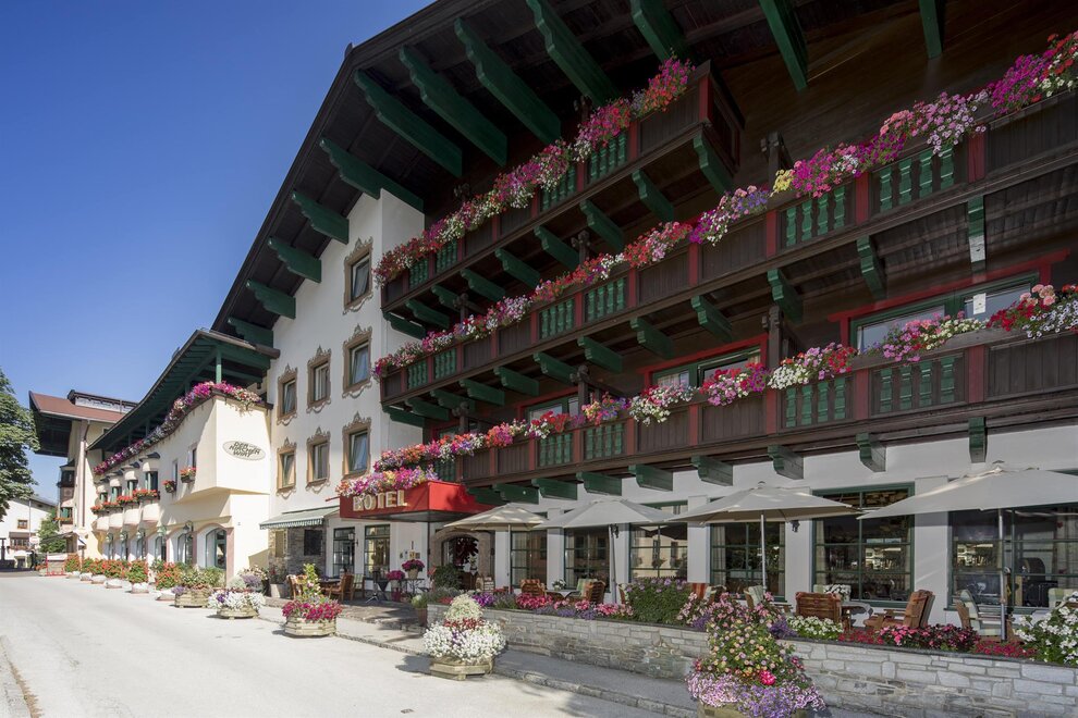 At the 4* Hotel Kirchenwirt in Reith in the Alpbach Valley you are greeted with colourful blossoms on the wooden balconies. It is the number one hotel on the square, located right in the middle of the village. Cordial hospitality and joie de vivre have been at home here since 1616.
