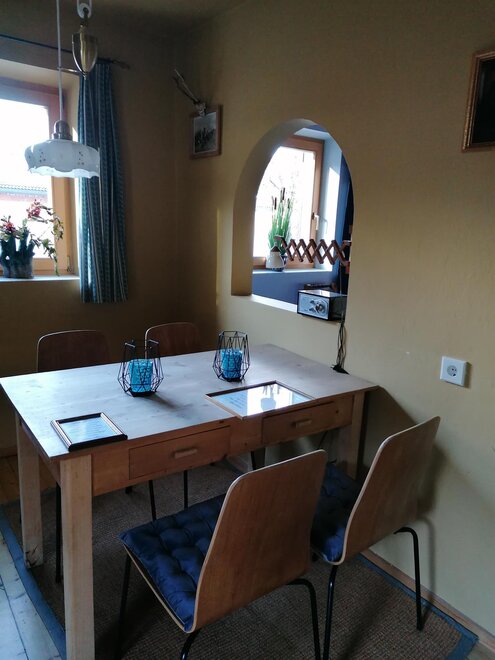 The apartment "Josefine and her cavalier" is lovingly furnished in vintage style and has a bedroom with swing bed, an extra bed in the living room. A nice kitchen invites you to cook. Wonderful views of our mountain world will make your holiday with us unforgettable.