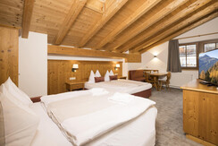 2 separat sleeping areas, Double bed, 2 single beds, sofa bed for the 5th and 6th person, shower/toilette, care products, towel warmer, balcony, Bed linen, Satellite TV, free wifi, towels, hairdryer, seating possibility