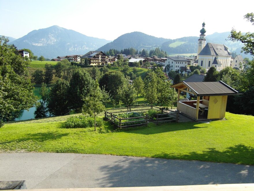 Our garden with a garden house and a wonderful view of Lake Reither invites you to relax.
