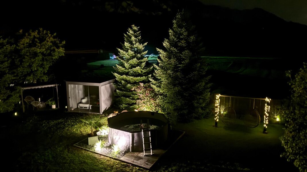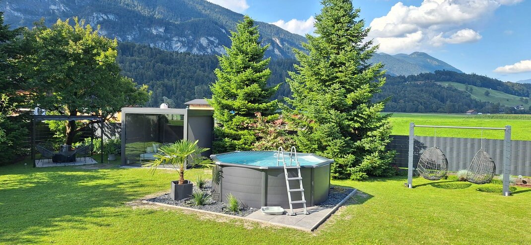 In this larger vacation apartment, over 60 m² in size, you will live like royalty. Fresh, bright colors and rooms invite you to linger. A balcony with cozy seating offers views of the Voldöpperspitze, the Sonnwendjoch, and the adjacent fields.