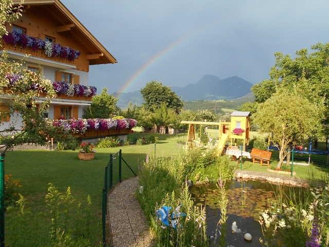 All rooms are equipped with shower/WC/FÖN/soap dispenser, cable TV and internet connection and furnished with lots of wood in a cosy and rural style. 3 rooms have balcony. There are 2 terraces and 1 playground as well as a large car park available. In our large lounge there is plenty of room for social gatherings. We are also happy to spoil our guests with an ample breakfast buffet.Our rental was awarded 3 out of 4 Edelweiß in June 2017.