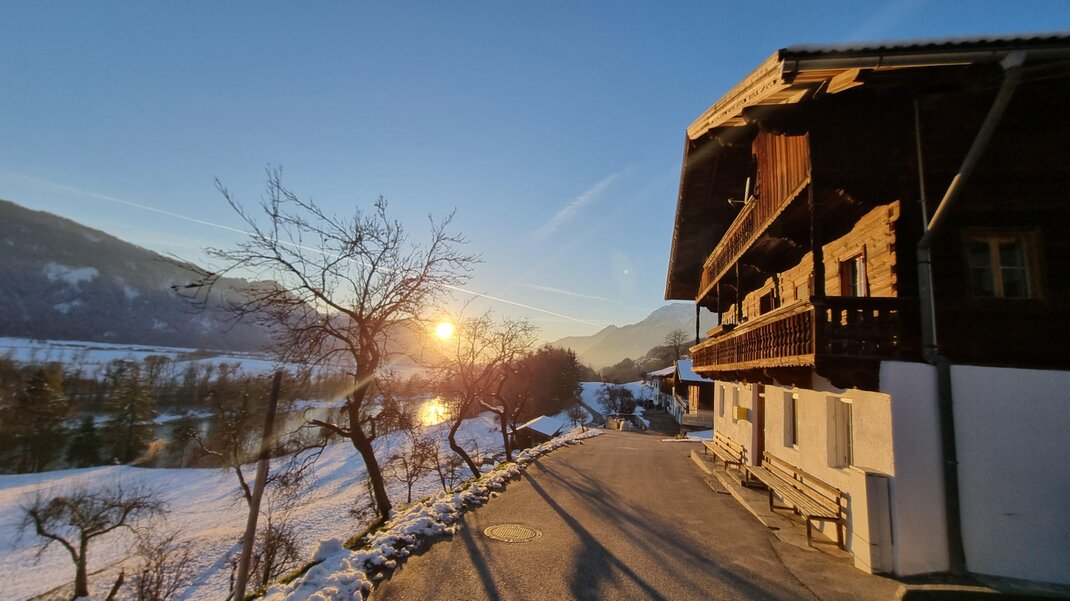 Enjoy the breathtaking views of the Inn Valley, the Gratlspitz, or the surrounding mountains, amidst three great ski areas for young and old (Alpbachtal 22 km - Wilder Kaiser 21 km - Zillertal Spieljochbahn 28 km).